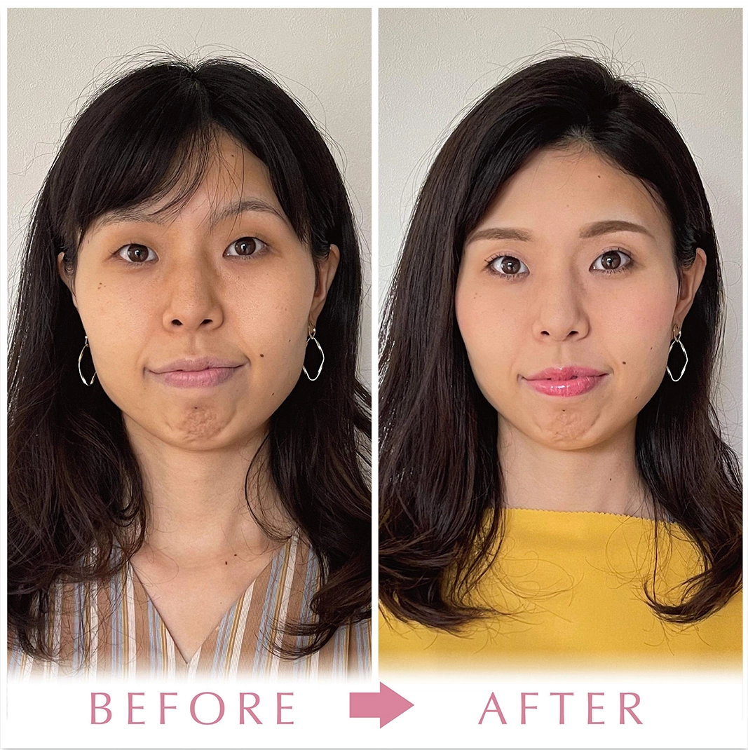 長年コンプレックスだったエラをなんとかしたいと、1日たった5分のセルフケアでお顔を変える「フェイスデザイン」を考案。何をしても小さくならなかったえらが小さく。